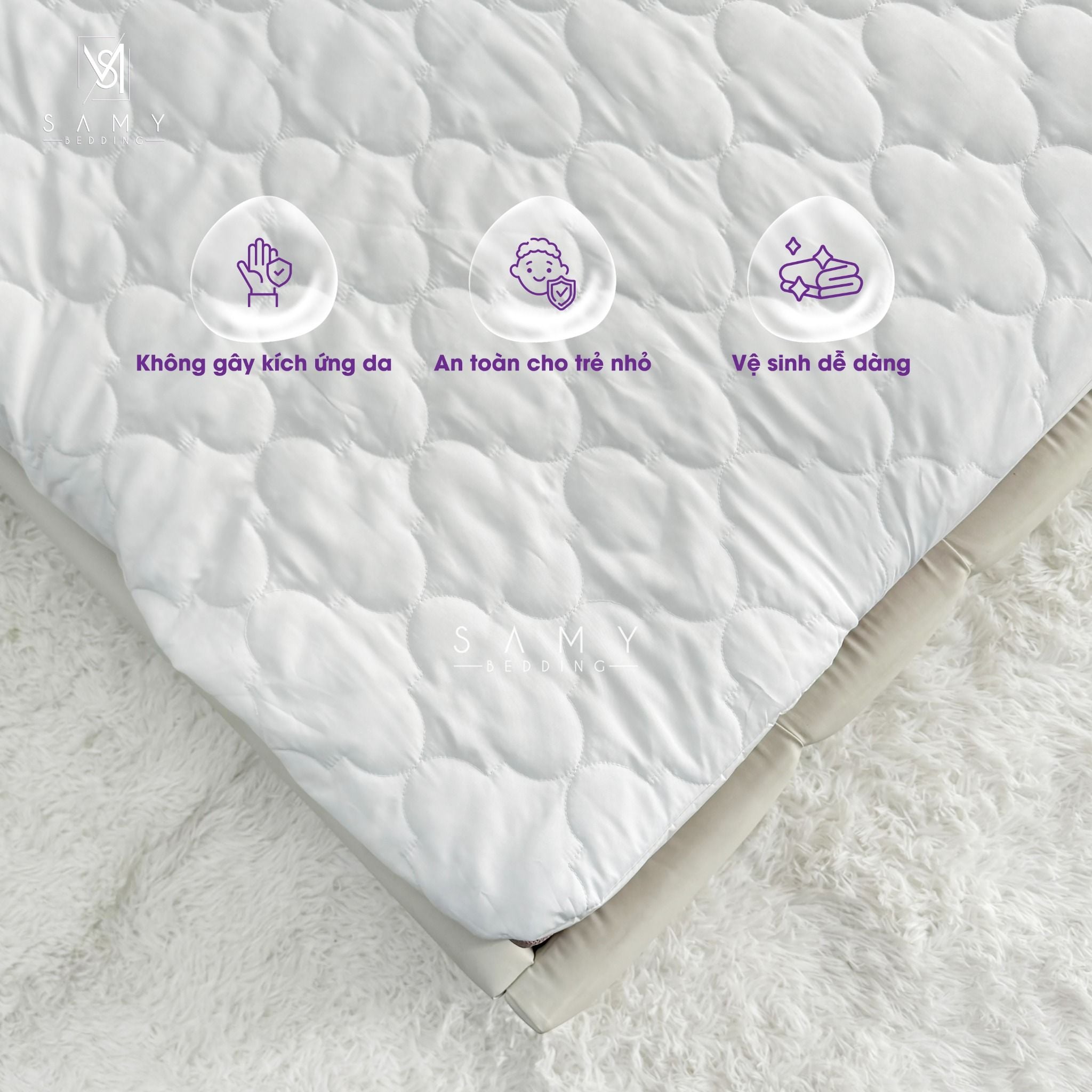 - Đặt trên tấm nệm để giữ gìn vệ sinh cho nệm. Bảo vệ hoàn toàn cho tấm nệm khỏi bụi bẩn và các chất bẩn khác.