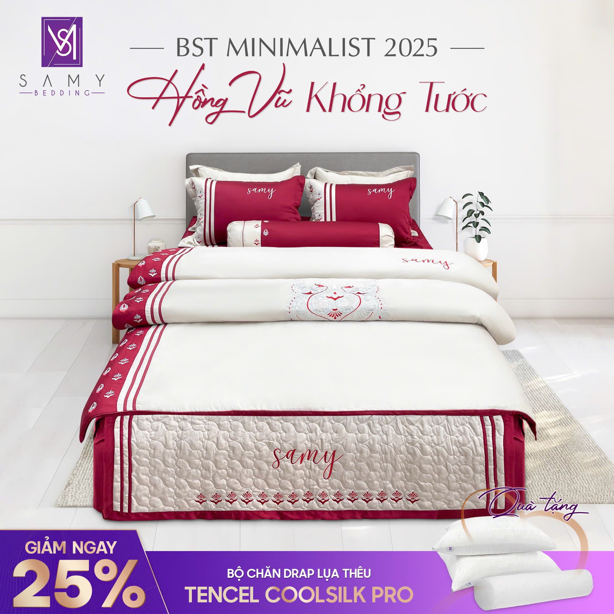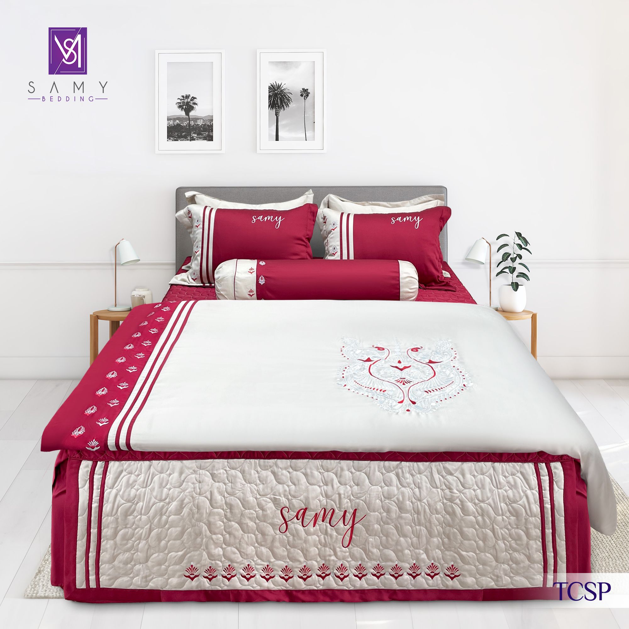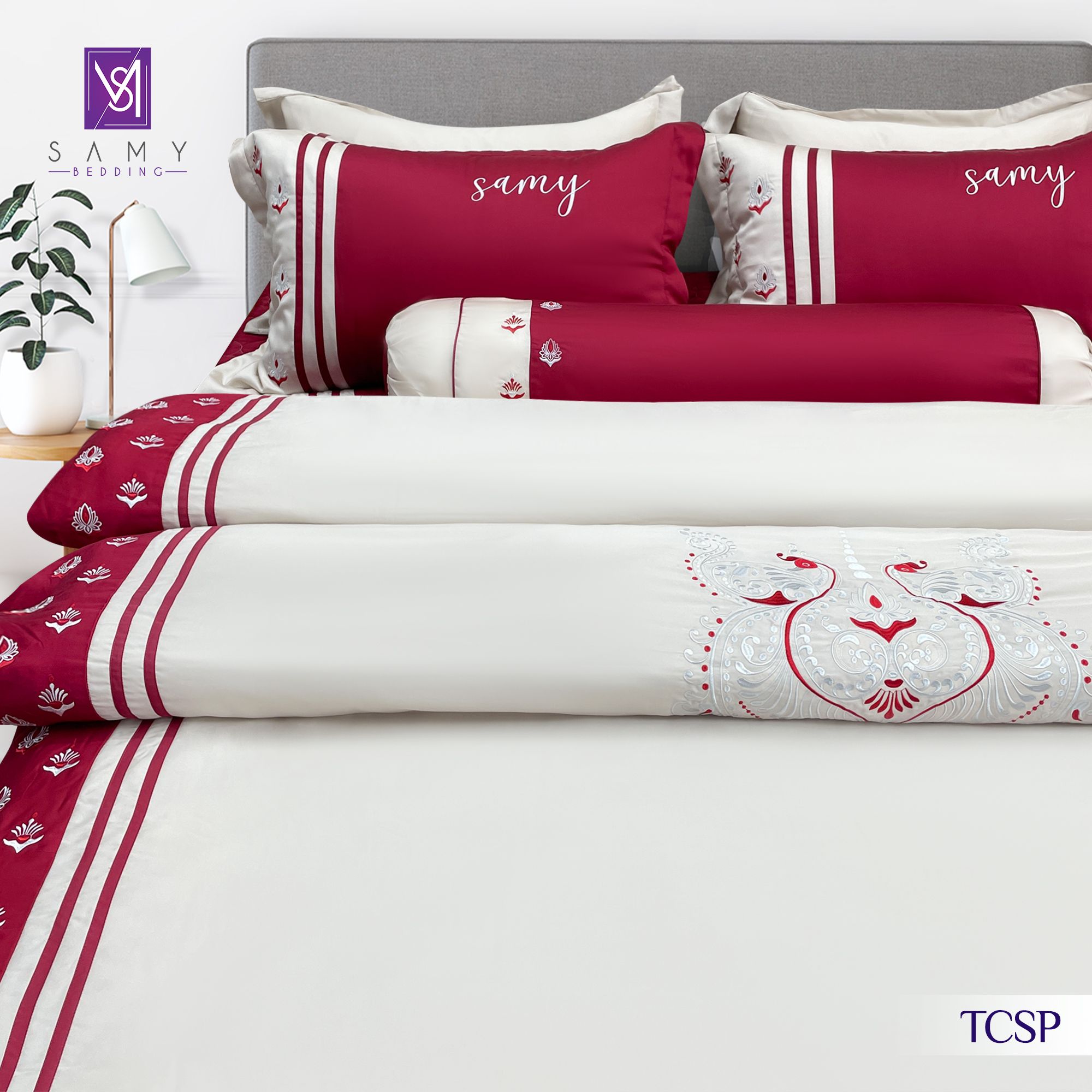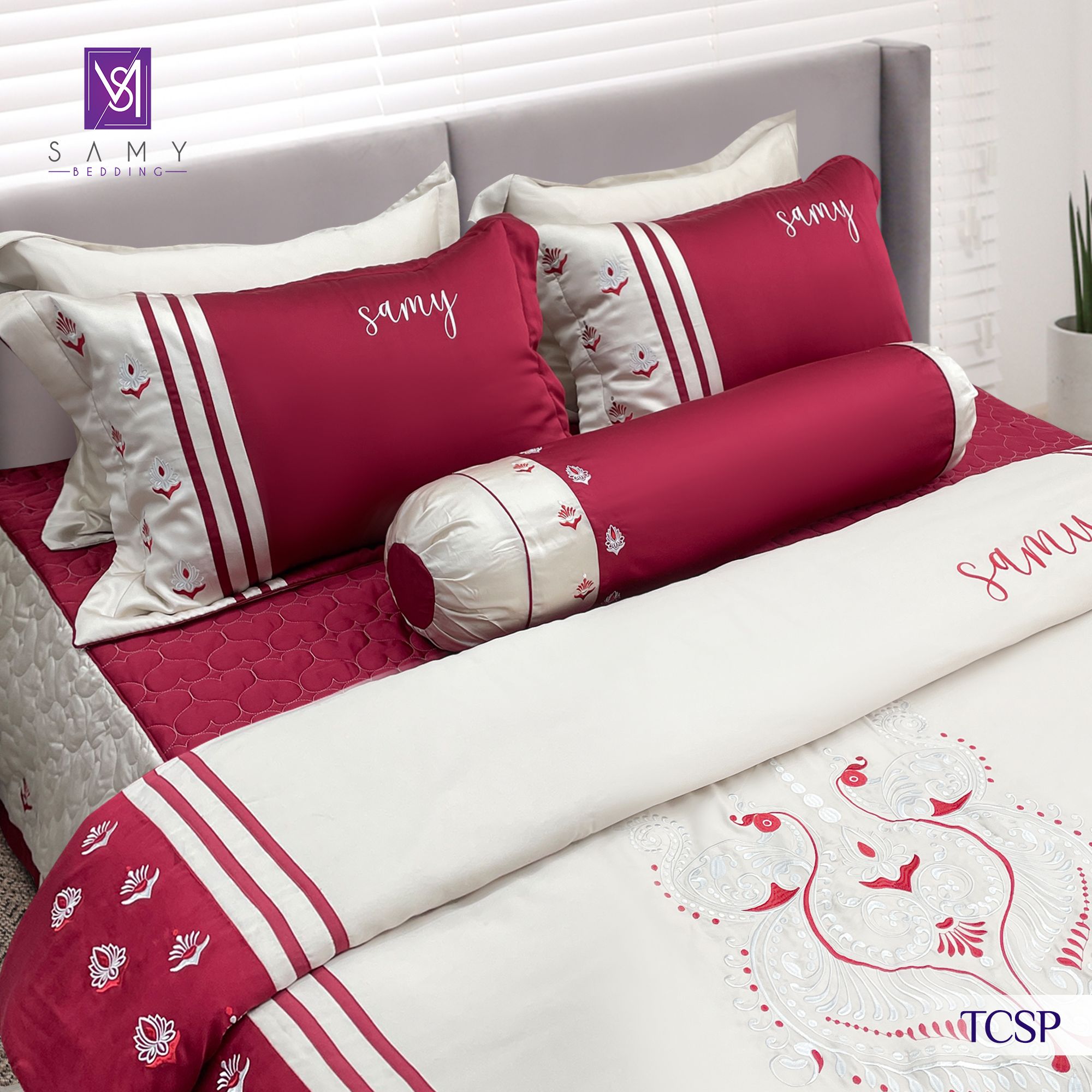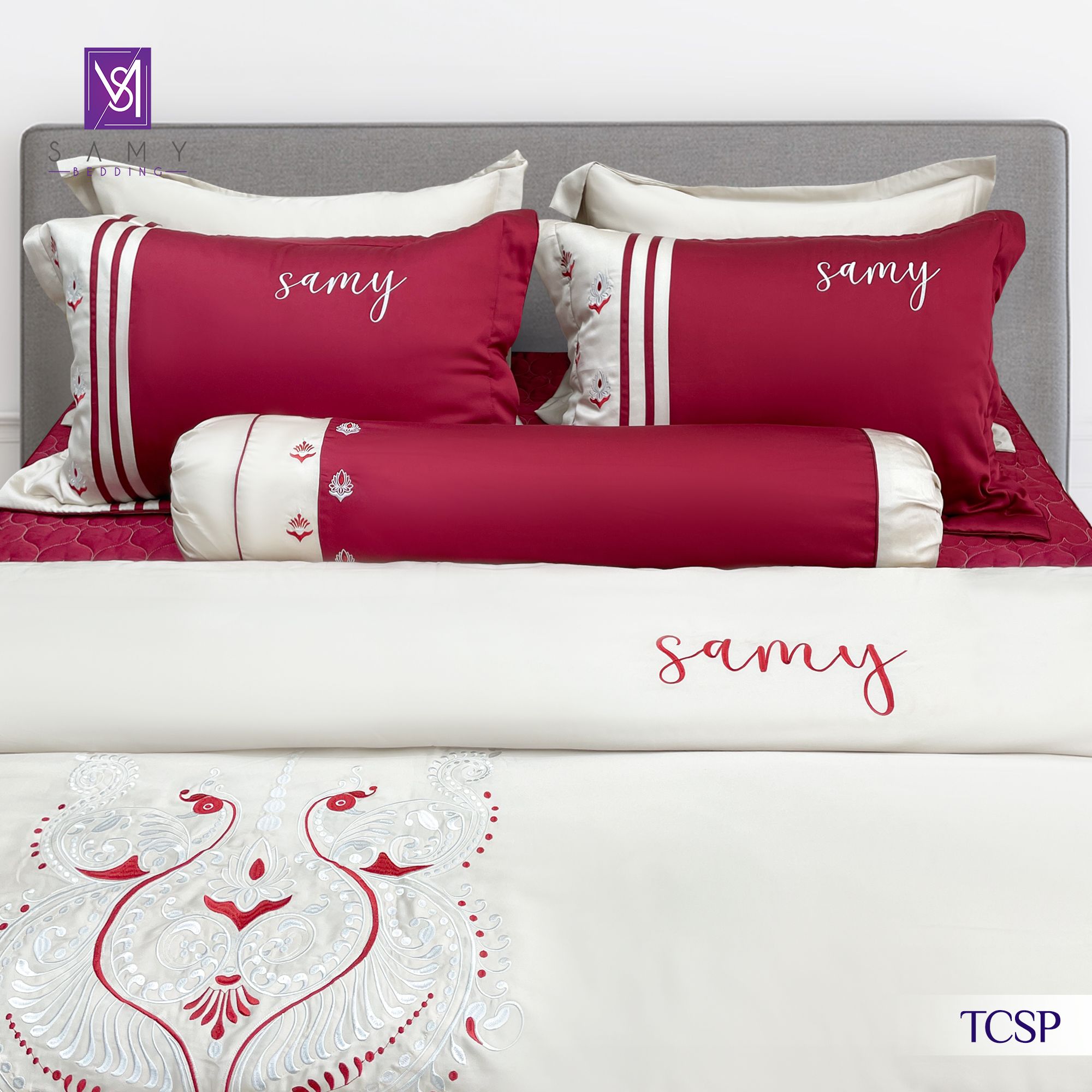 Lấy cảm hứng từ vẻ đẹp uy nghi và lộng lẫy của loài chim khổng tước, Bộ sưu tập Hồng Vũ Khổng Tước từ Samy Bedding mang đến không gian nghỉ ngơi đầy đẳng cấp và sang trọng. Sắc hồng đỏ quyến rũ kết hợp với họa tiết thêu tinh xảo tái hiện vẻ đẹp lộng lẫy, quý phái trong từng chi tiết
