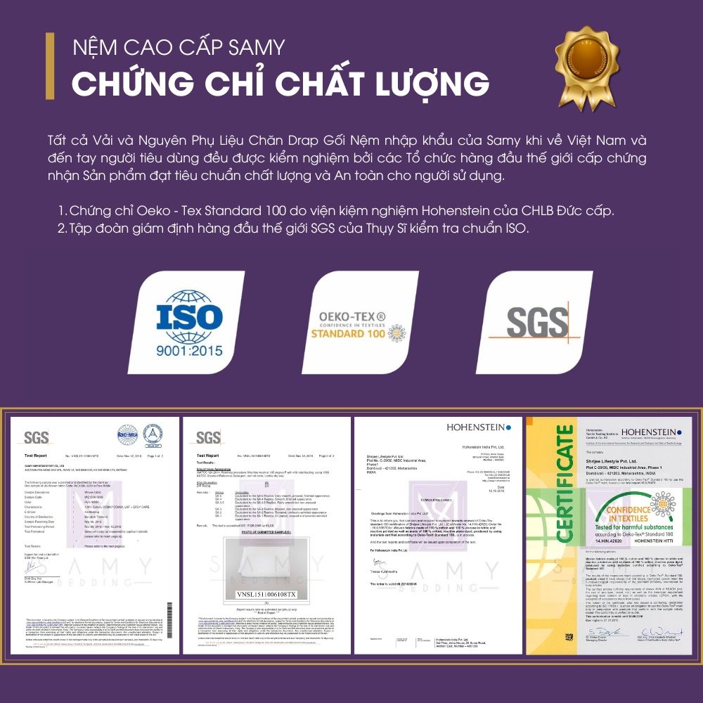- Nên bảo quản NỆM SAMY SUITE bằng ga chống thấm.