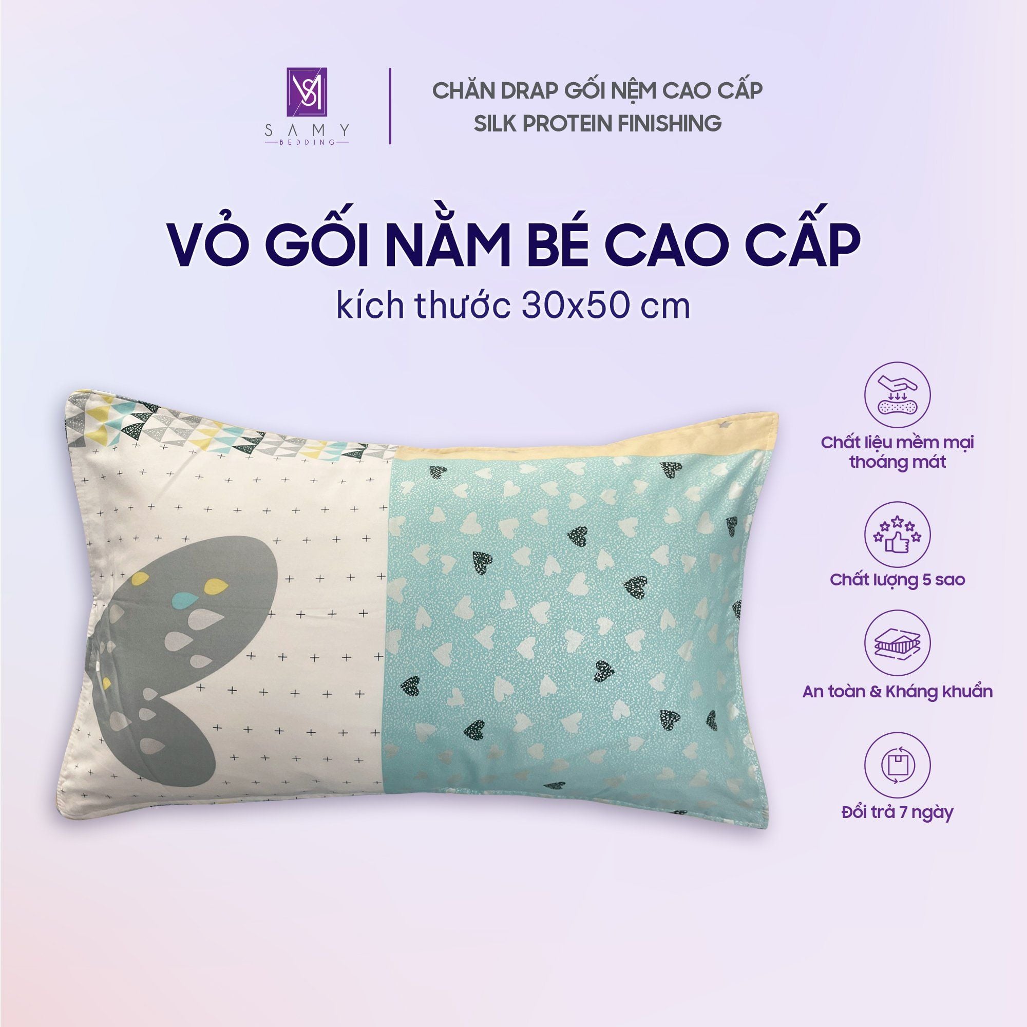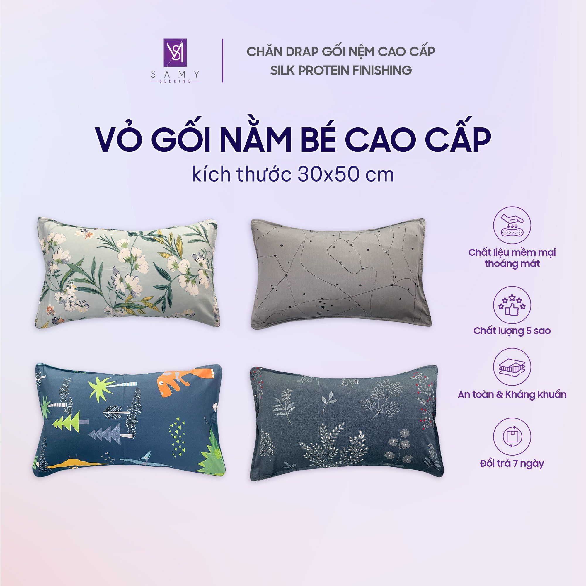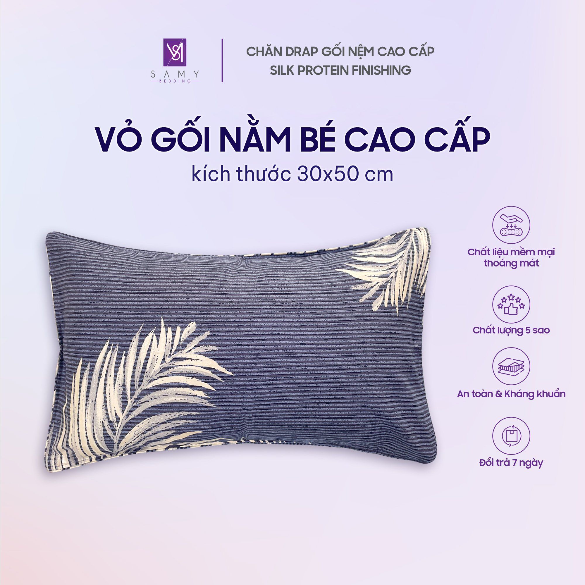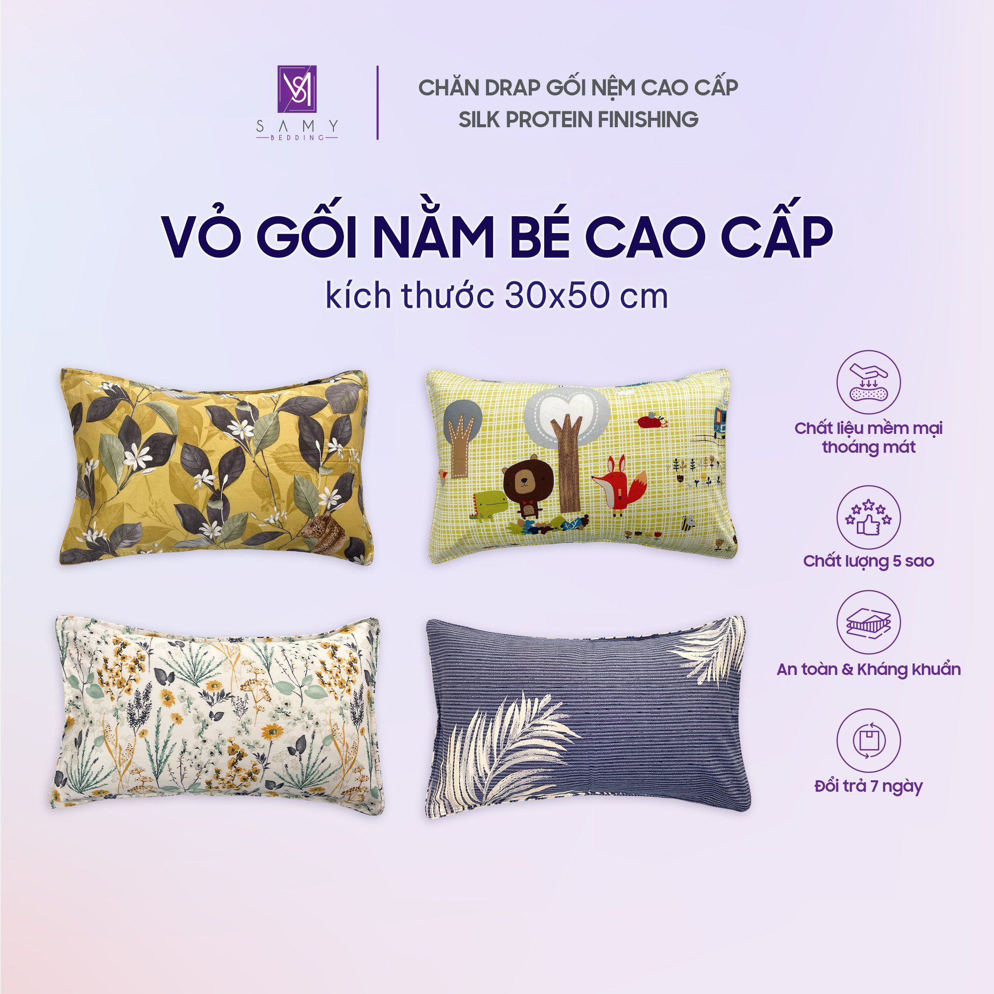 - VỎ GỐI NẰM BÉ CAO CẤP Siêu mát mịn, thoáng khí mềm mại. Hoàn tất vải Silk Protein Finishing tăng độ bóng mượt và độ bền, chống nhăn và dễ dàng vệ sinh.