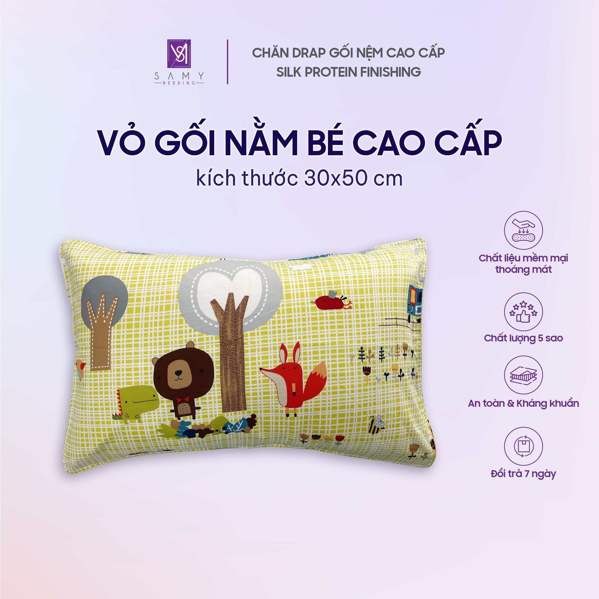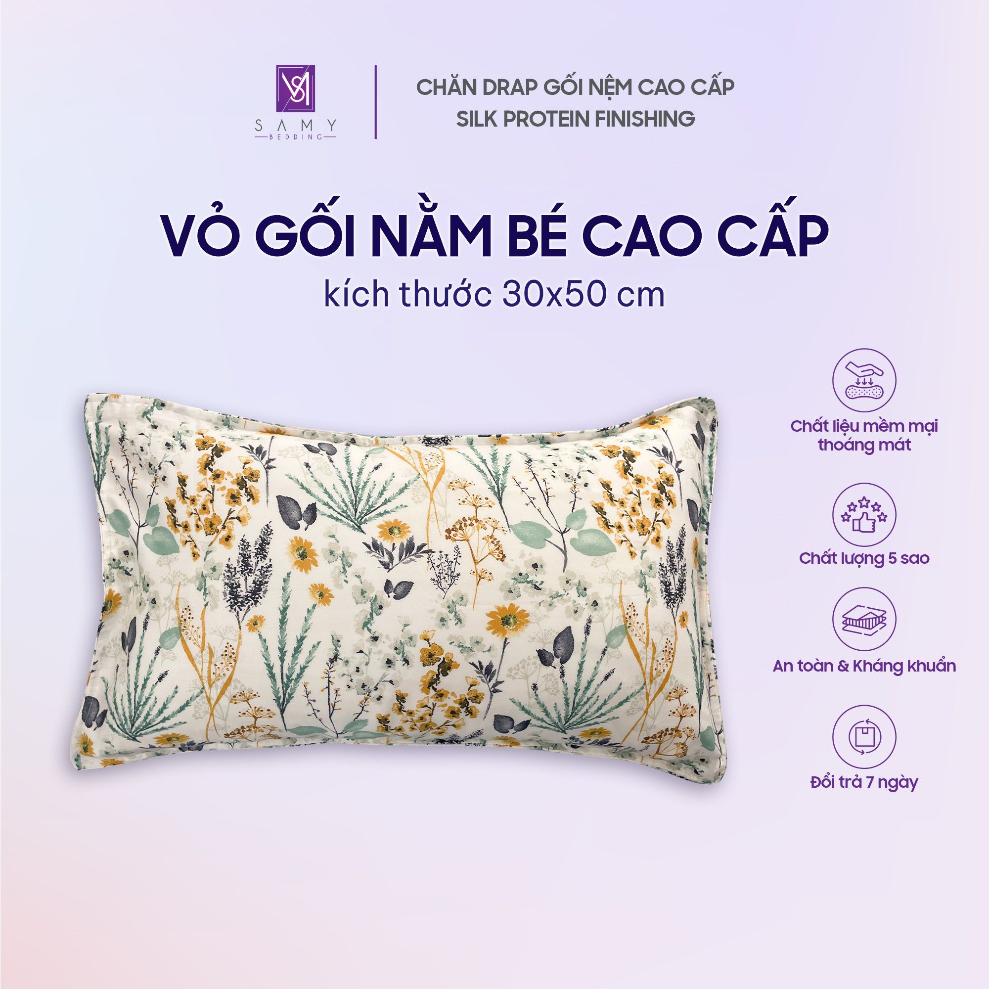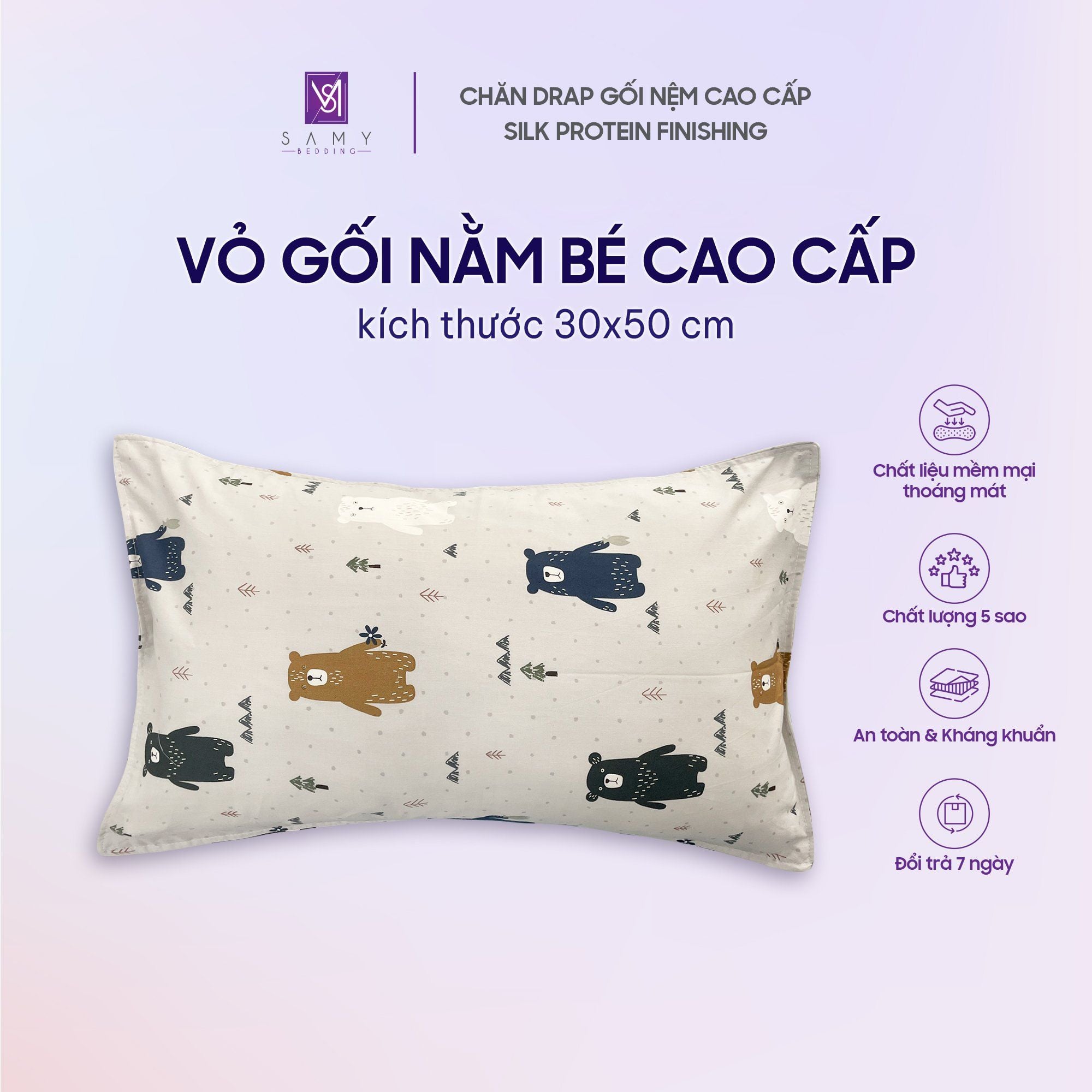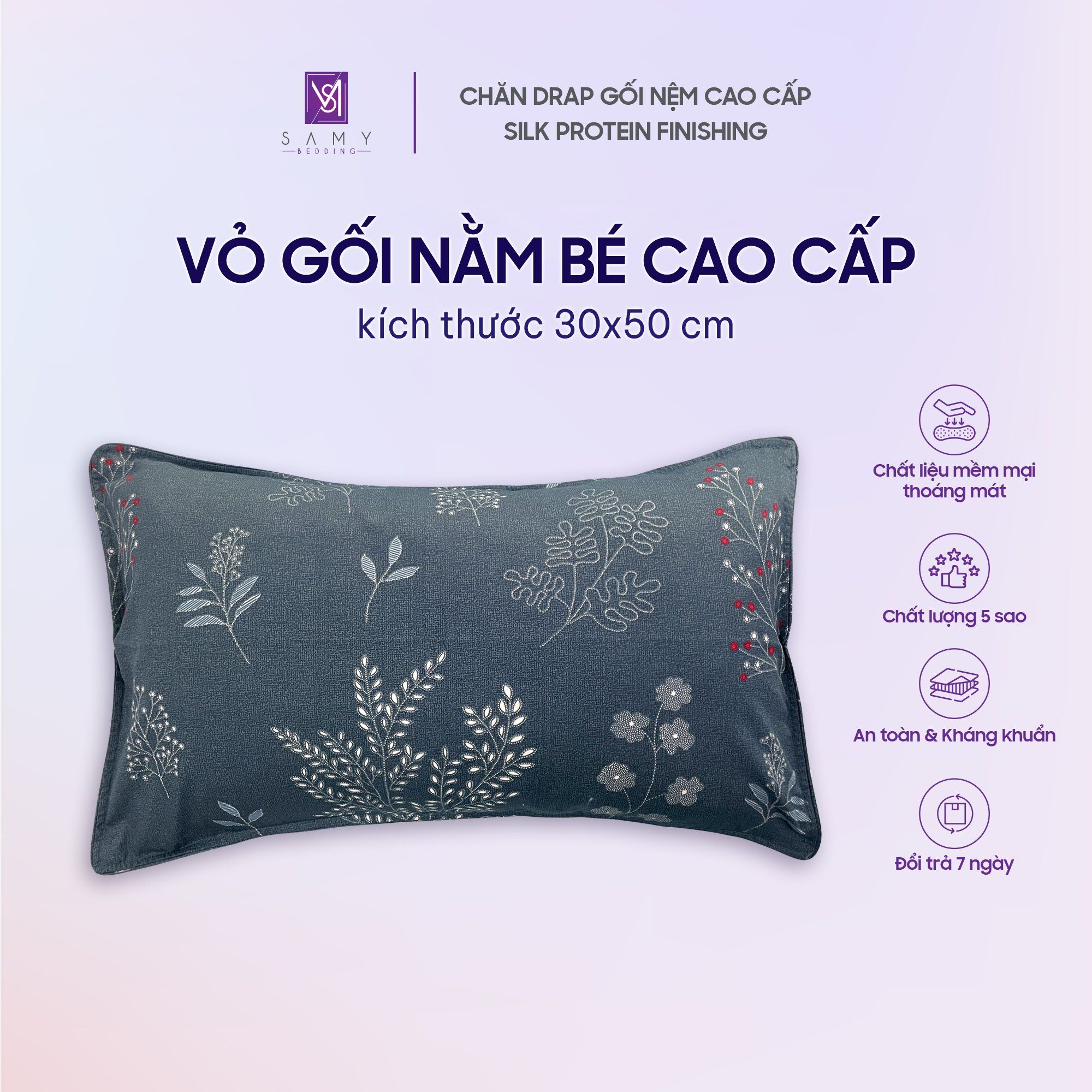 - VỎ GỐI NẰM BÉ CAO CẤP Siêu mát mịn, thoáng khí mềm mại. Hoàn tất vải Silk Protein Finishing tăng độ bóng mượt và độ bền, chống nhăn và dễ dàng vệ sinh.